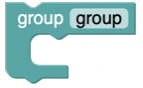 One of the most powerful features of world objects is the ability to group multiple objects and later select the group. This mostly applies to JavaScript but has important applications in the block environment as well. The group block is shown below. Any objects created inside the group share any manipulations including movement, rotation, and scaling. Object properties such as x, y, and z location and others are calculated as the average of the groups constituent objects. In JavaScript, grouping object(s) allows you too retrieve a reference to the object at a later time.
